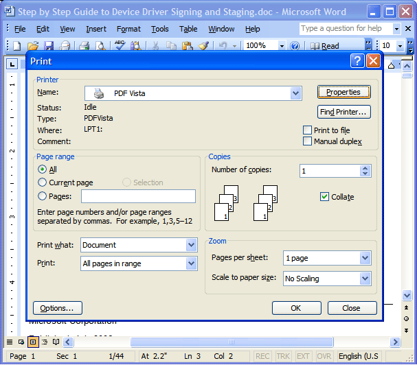 share PDF Vista printer as a network shareable printer,